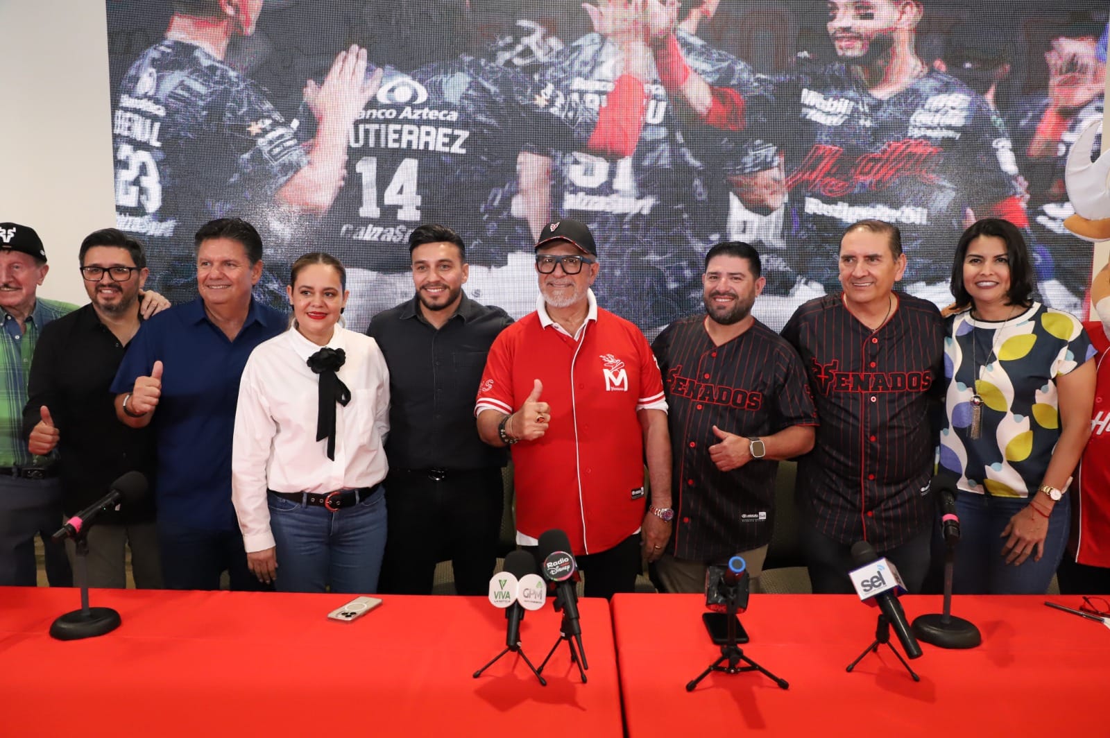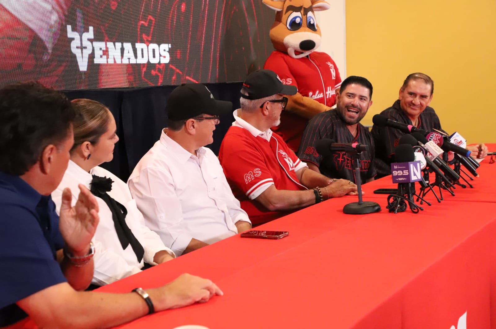 La nueva temporada beisbolera dará inicio y en el panel se encontraba Edgar González el alcalde de Mazatlán; Teresa Apodaca presidenta del DIF Mazatlán, José Antonio Toledo presidente del Consejo de Administración de Venados Mazatlán, así como Sergio Lizárraga, representante de Banda MS.